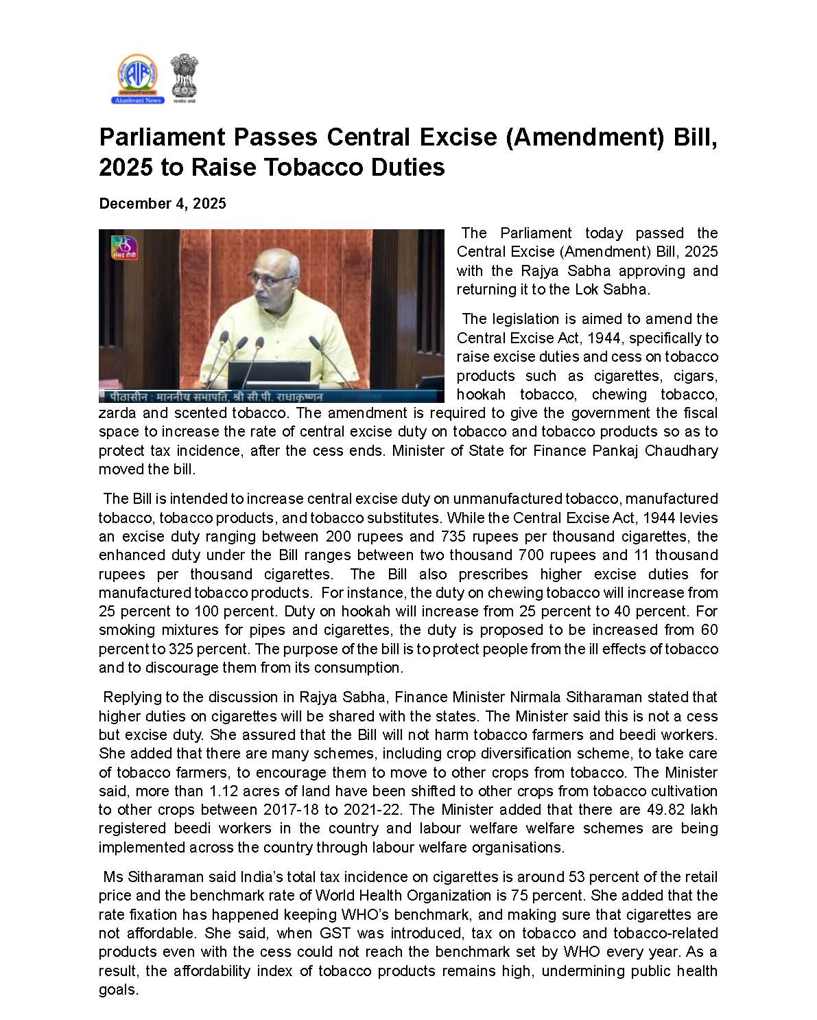 In the case of Cigarettes, on which excise duty, VAT and other State level taxes were being levied previously, the highest GST rate of 28% is now being levied in addition to GST Compensation Cess, Basic Excise Duty (BED) and National Calamity Contingent Duty (NCCD).