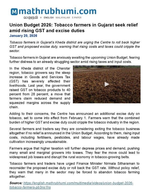 ASSOCHAM study Tobacco Economics in India: The Voice of the Farmer and other Stakeholders found that the tobacco growing areas of the three major tobacco producing States in India, viz., Andhra Pradesh, Karnataka and Gujarat are better off in several socio-economic parameters as compared to the non-tobacco growing areas of these States. “…tobacco does create higher returns and other social capabilities for its farmers than those who are engaged in growing other cash crops,” the study report observed.