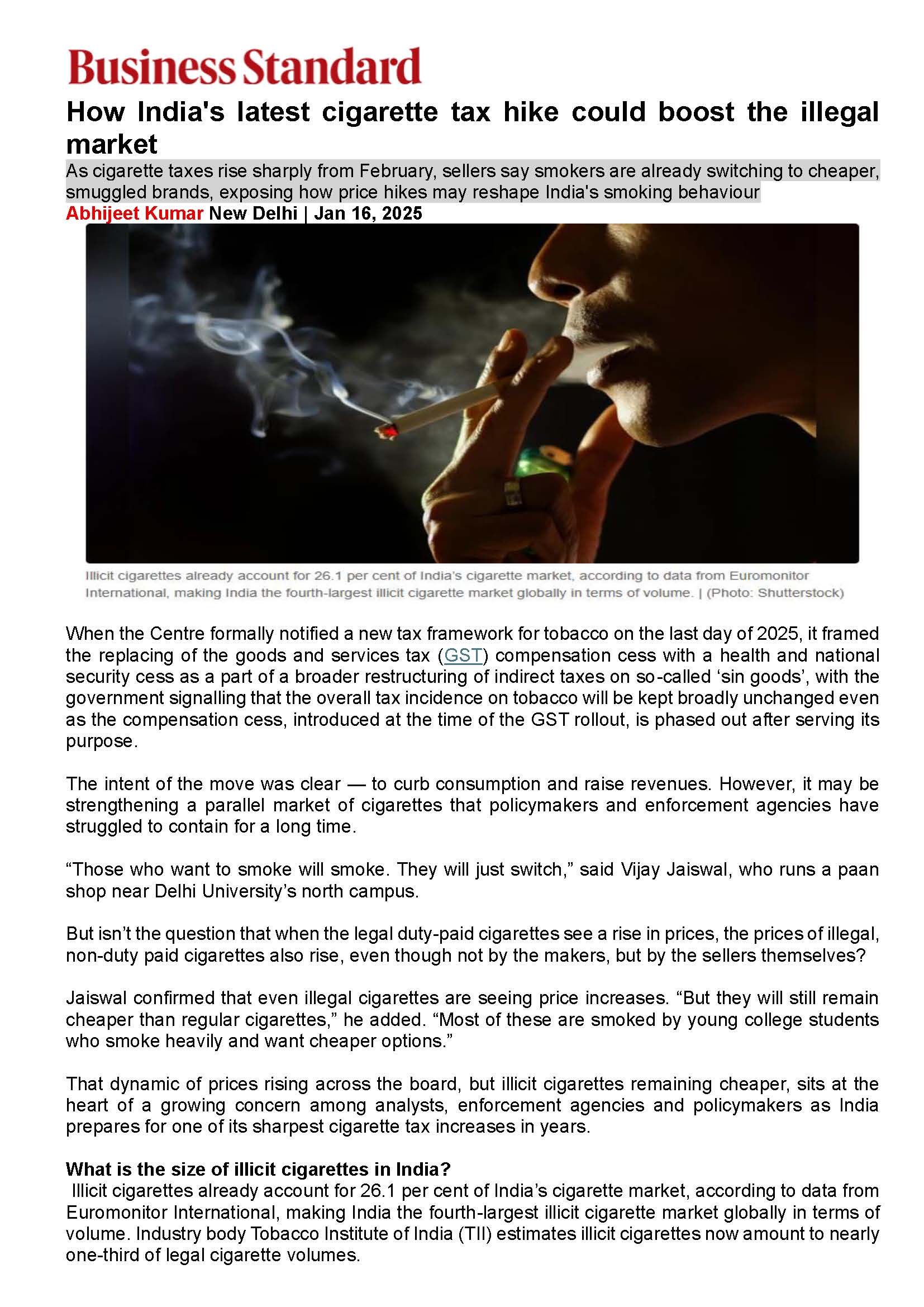 The reported seizures are only the tip of the gigantic iceberg, of a much larger operation, as for every seizure multiple consignments escape surveillance. This is evidenced by the widespread availability of smuggled cigarettes across the country.