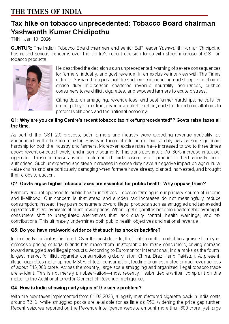 | January 19, 2025 | Vijayawada | January 18 | 25.38 Lakh Sticks | Customs | The Times of India | |